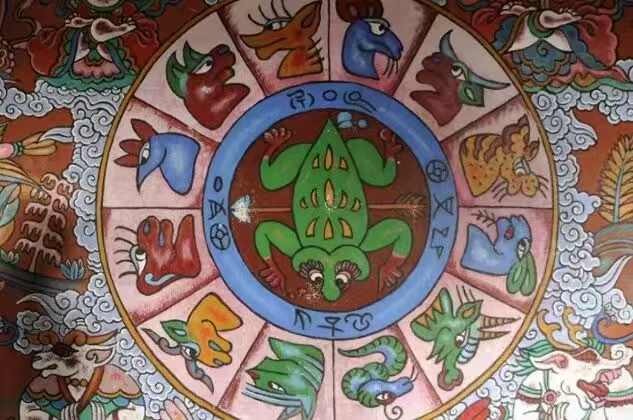 據古老的東巴經《崇搬圖》(創世紀)記載,在宇宙混沌萬物還沒有產生的時候,上方傳來一個美妙的聲音,下方冒出一個白氣,聲音和氣結合產生了天和地。